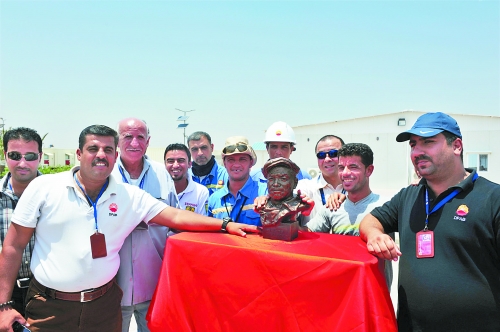 中国石油伊拉克项目当地雇员与铁人铜像合影