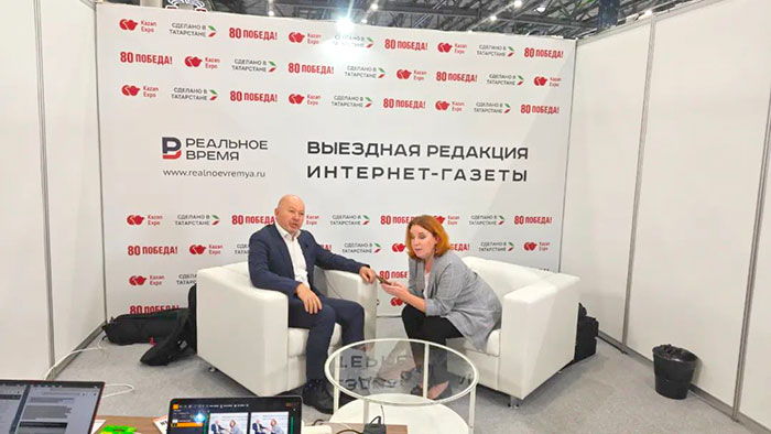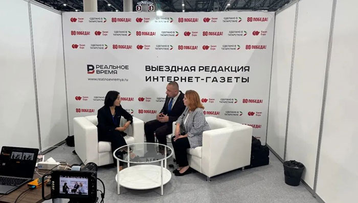 中国展团的精彩亮相也获得当地媒体广泛关注。展会期间,俄媒体《реальное время》特邀中国展团代表接受专访,振威国际会展集团董事副总裁孙宇、深圳青钿信息科技有限公司俄罗斯分公司副总经理康斯坦丁、北京昊图科技有限公司副总经理刘亚利等畅谈合作前景。孙宇在采访中表示,振威国际会展集团始终致力于搭建高水平的国际能源合作平台,愿借此次展会,进一步推动中俄企业之间的务实合作。