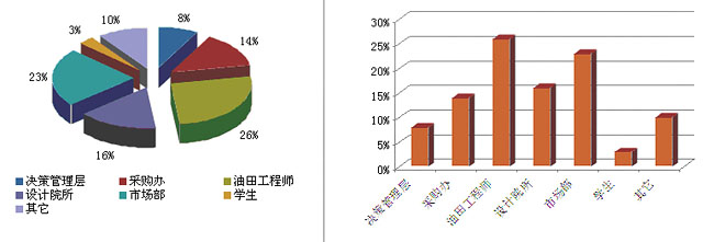 | 决策管理层 8%、采购办 14%、油田工程师 26%、设计院所 16%、市场部 23%、学生 3%、其它 10% |
